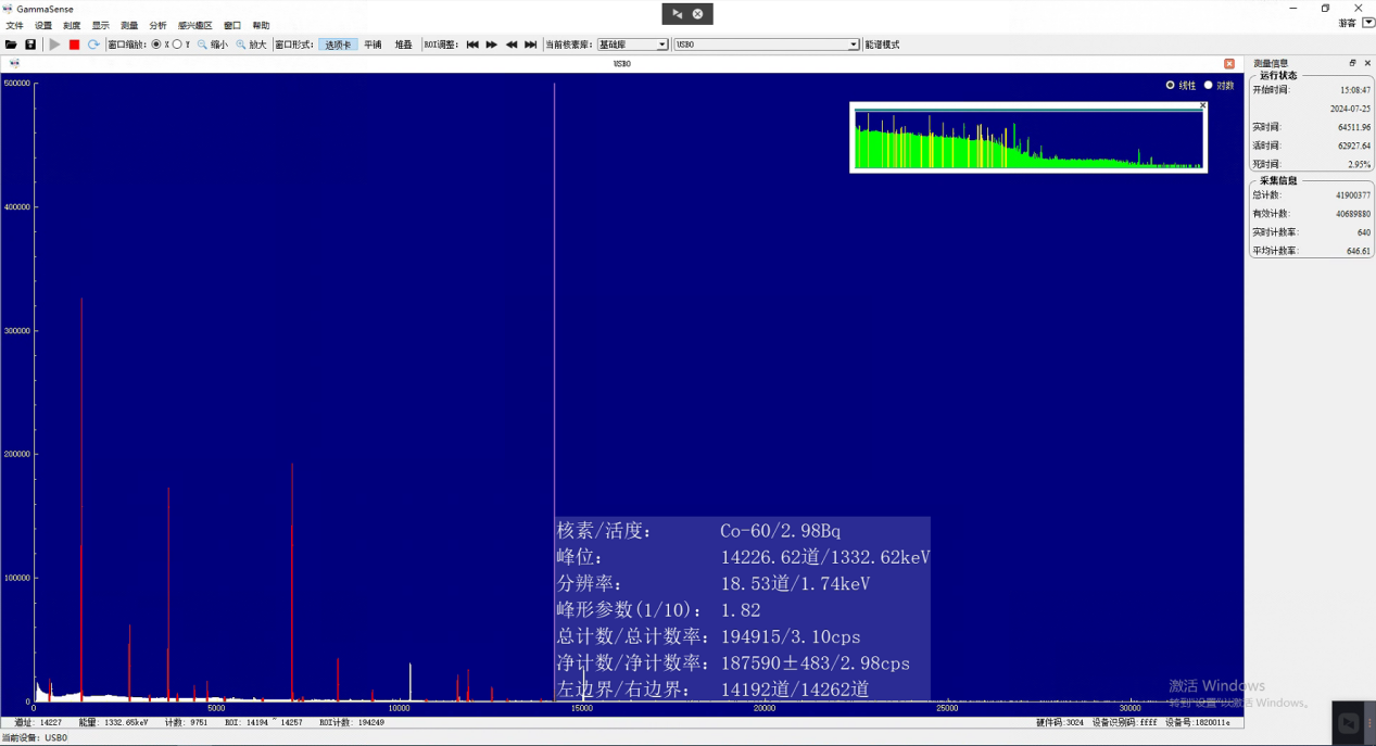 | 譜儀控制 | 一鍵連接多道、調節高壓、顯示實時間/活時間、計數率等 |