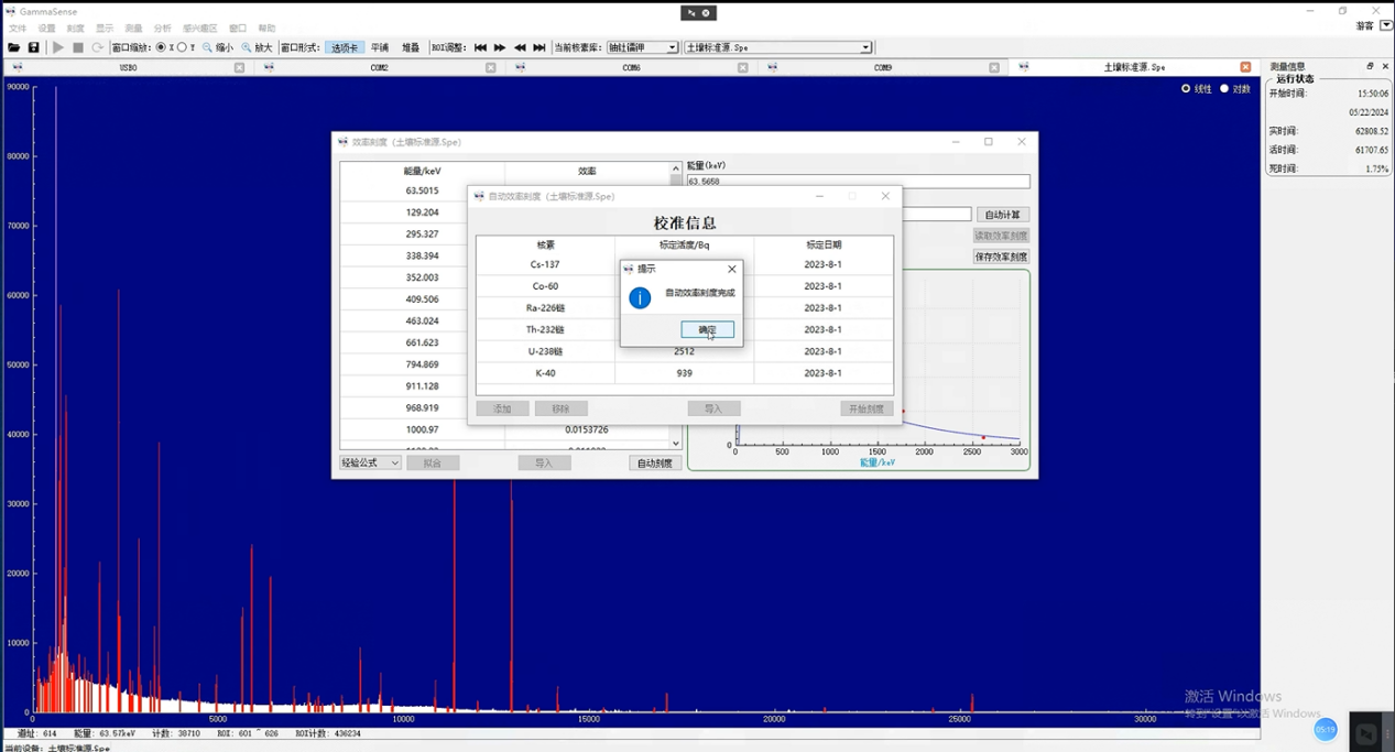 | 實時分析 | 側邊欄實時擬合選定峰位,實時核素識別、峰面積計算 |
