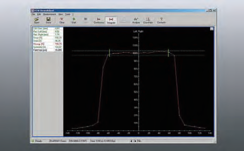 ● 沿著主軸或者對角線測量高分辨率(3mm) 的劑量輻射剖面曲線圖;